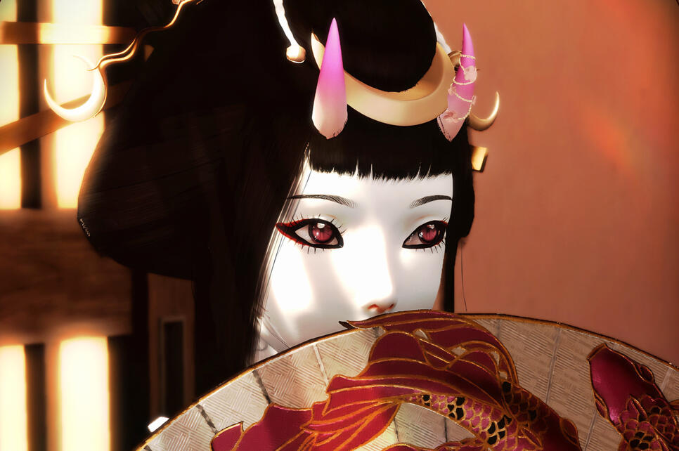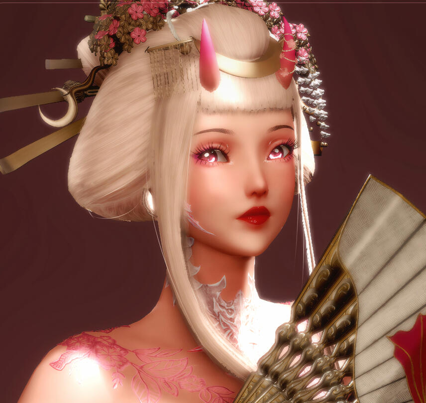 In the gleaming port city of Kugane, where cherry blossoms danced across tiled rooftops and the sea whispered tales from distant shores, a child was born under a pink moon. Her name was Echiko, daughter of Ryoka, a compassionate raen medic, and Ei, a formidable oni and exiled Yakuza rōnin whose name once echoed in fear across Hingan alleyways. However, due to his chaotic and defiant nature, he was stripped from his ranking and discharged from the syndicate.From the outside, Echiko's life was pristine, a childhood of silks and song, educated within the ivory walls of prestigious Hingan academies. She recited poetry in imperial dialect, bowed with grace that made courtiers weep, wrote calligraphy and played the shamisen like a muse reborn. Her mother's influence sculpted her with the elegance and discipline expected of a noble daughter. But within, another force stirred. At eleven, it awoke...It began subtly: a shimmer under her skin, the soft flush of pink on her once-white scales. Then, her horns. Their color a pale sakura pink and sharp; protruding from her forehead rather than the side. The horns mirrored her father’s mostly. She had become unmistakably oni-blooded. Her father, Ei, was filled with a deep and sadistic joy.“I see it in your eyes, little flame,” he said with a malicious grin. “You burn. Don’t let them chain it. Let it loose.” His teeth porcelain, sharp and intimidating before the tiny hybrid.But Echiko, refined, proud, and headstrong....refused.Where her siblings were apathetic to their paths, she was unwavering. She would walk the road of nobility, of service, of good. Her mother's gentle hands had guided her not with sermons, but by example: a quiet strength, a life of healing. Ryoka never denied her husband’s chaos, but she never let it rule her household either.As her teen years flared with arguments and emotional storms, Echiko came to understand: Ei didn't want obedience. He wanted release. To see the tempest in his daughter unleashed, untamed, glorious and raw. But Echiko would not give him that satisfaction.At age twelve, the small Raen learned that meditation alone could not contain the fire within her; especially after a heated altercation with her otousan. Seeking a way to channel that intensity, she turned to her mother, Ryoka, and began confiding in her. Understanding her daughter's struggle, Ryoka introduced her to the traditional path of the geisha; a discipline that could help Echiko deepen her appreciation for her Hingan heritage while tempering her inner flame. Over the next five summers of her adolescence, this path became more than a practice; it became a passion..