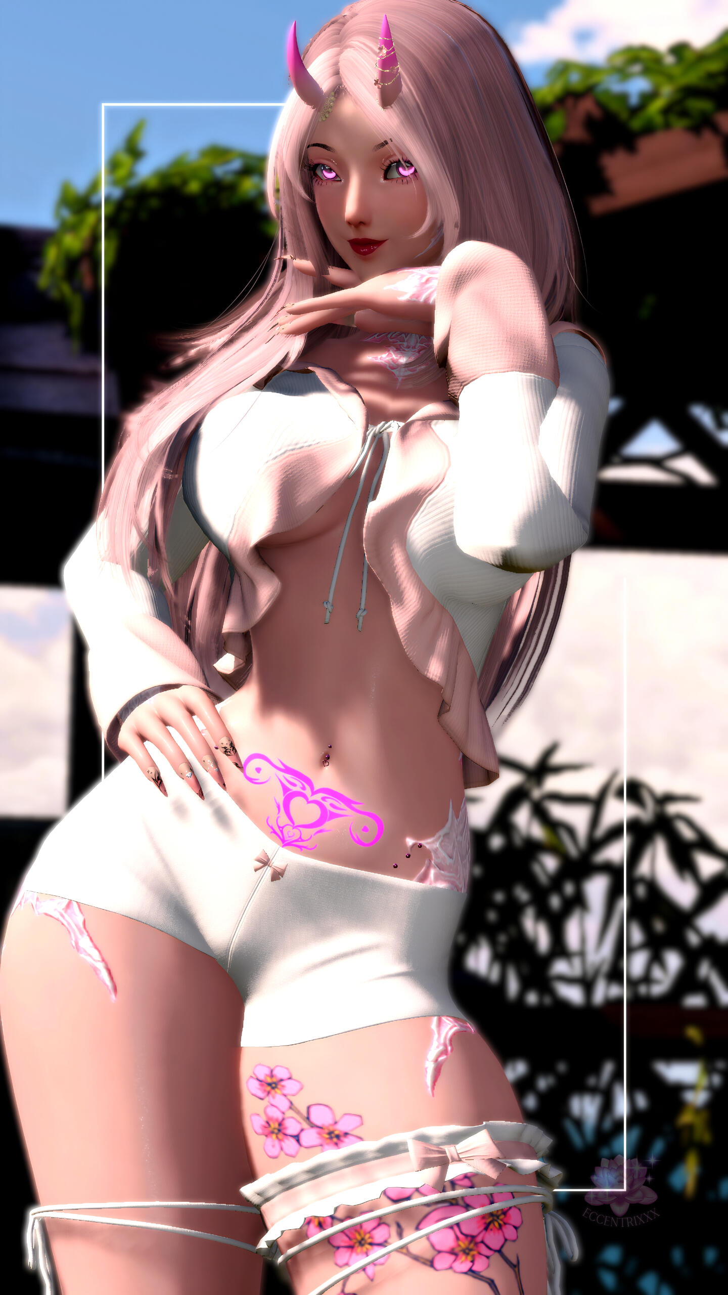 In the gleaming port city of Kugane, where cherry blossoms danced across tiled rooftops and the sea whispered tales from distant shores, a child was born under a pink moon. Her name was Echiko, daughter of Ryoka, a compassionate raen medic, and Ei, a formidable oni and exiled Yakuza rōnin whose name once echoed in fear across Hingan alleyways. However, due to his chaotic and defiant nature, he was stripped from his ranking and discharged from the syndicate.From the outside, Echiko's life was pristine, a childhood of silks and song, educated within the ivory walls of prestigious Hingan academies. She recited poetry in imperial dialect, bowed with grace that made courtiers weep, wrote calligraphy and played the shamisen like a muse reborn. Her mother's influence sculpted her with the elegance and discipline expected of a noble daughter. But within, another force stirred. At eleven, it awoke...It began subtly: a shimmer under her skin, the soft flush of pink on her once-white scales. Then, her horns. Their color a pale sakura pink and sharp; protruding from her forehead rather than the side. The horns mirrored her father’s mostly. She had become unmistakably oni-blooded. Her father, Ei, was filled with a deep and sadistic joy.“I see it in your eyes, little flame,” he said with a malicious grin. “You burn. Don’t let them chain it. Let it loose.” His teeth porcelain, sharp and intimidating before the tiny hybrid.But Echiko, refined, proud, and headstrong....refused.Where her siblings were apathetic to their paths, she was unwavering. She would walk the road of nobility, of service, of good. Her mother's gentle hands had guided her not with sermons, but by example: a quiet strength, a life of healing. Ryoka never denied her husband’s chaos, but she never let it rule her household either.As her teen years flared with arguments and emotional storms, Echiko came to understand: Ei didn't want obedience. He wanted release. To see the tempest in his daughter unleashed, untamed, glorious and raw. But Echiko would not give him that satisfaction.At age twelve, the small Raen learned that meditation alone could not contain the fire within her; especially after a heated altercation with her otousan. Seeking a way to channel that intensity, she turned to her mother, Ryoka, and began confiding in her. Understanding her daughter's struggle, Ryoka introduced her to the traditional path of the geisha; a discipline that could help Echiko deepen her appreciation for her Hingan heritage while tempering her inner flame. Over the next five summers of her adolescence, this path became more than a practice; it became a passion..